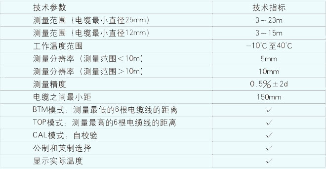 功能特點 1、可測量六根離地最高(低)導(dǎo)線的對地距離,自動換算線間(交叉跨越)垂直距離; 2、可測量室內(nèi)墻體尺寸,對電桿、變壓器和其他目標(biāo)的距離可達18米; 3、測量方式:測量依次離地最低六根導(dǎo)線的距離。便于選擇同桿塔的上層或下層導(dǎo)線(例如可避開同桿架設(shè)的電力線或通訊線等); 4、儀器具備自檢功能可很容易讓用戶檢查儀器的精度,對著墻面就可校正儀器; 5、進一步改進了對雜散訊號的抑制,使得性能更穩(wěn)定、測量更方便,按一次鍵就完成全部操作。